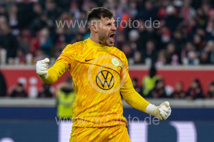 Schlussjubel und Freude bei Torwart Marius Müller (VfL Wolfsburg).