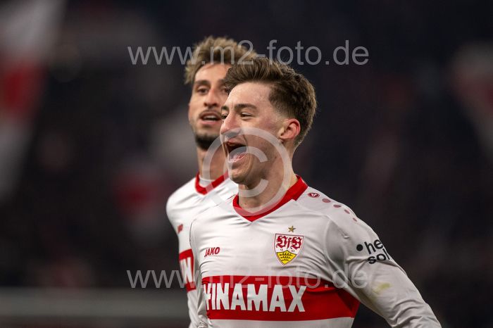 Torjubel des Torschützen Angelo Stiller (VfB Stuttgart).