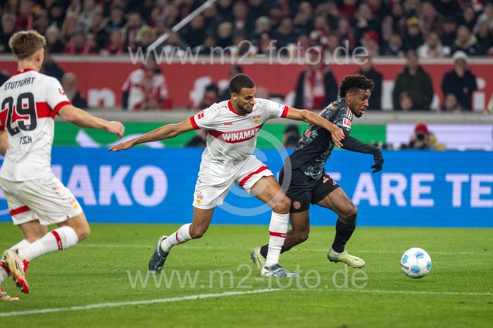 Josha Vagnoman (VfB Stuttgart) und Kingsley Coman (FC Bayern Muenchen).