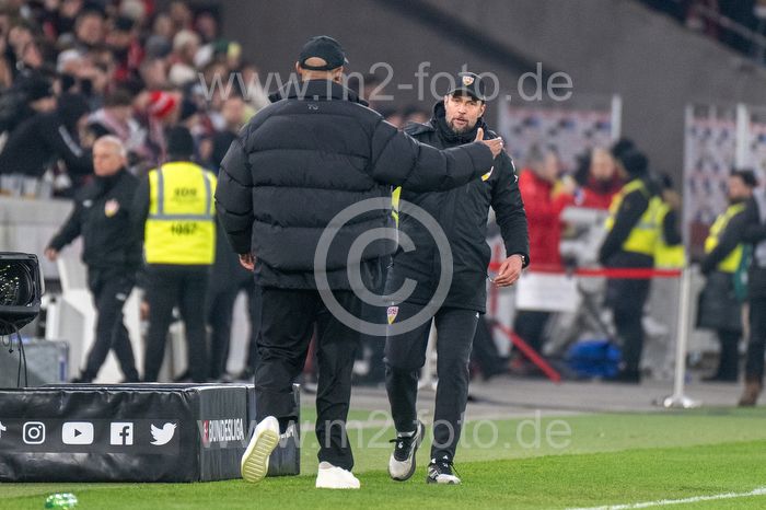 Trainer Vincent Kompany (FC Bayern Muenchen) und Trainer Sebastian Hoeneß (VfB Stuttgart).