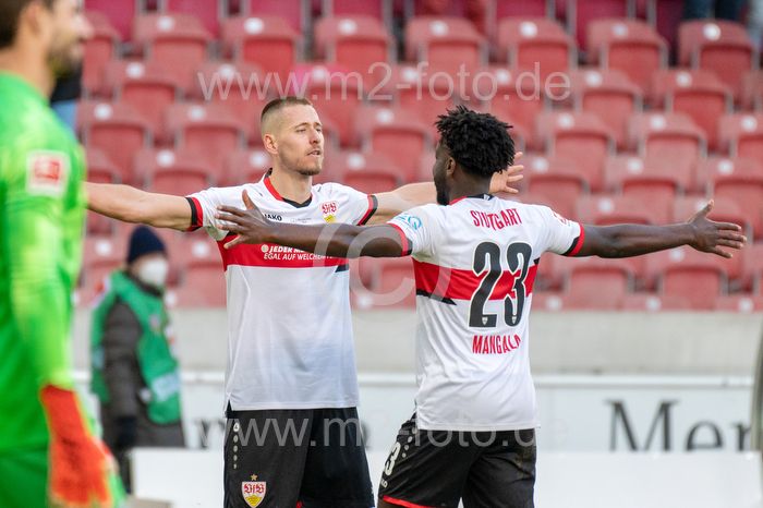 Torjubel des Torschützen Waldemar Anton, Jubel und Freude bei Orel Mangala (VfB Stuttgart).