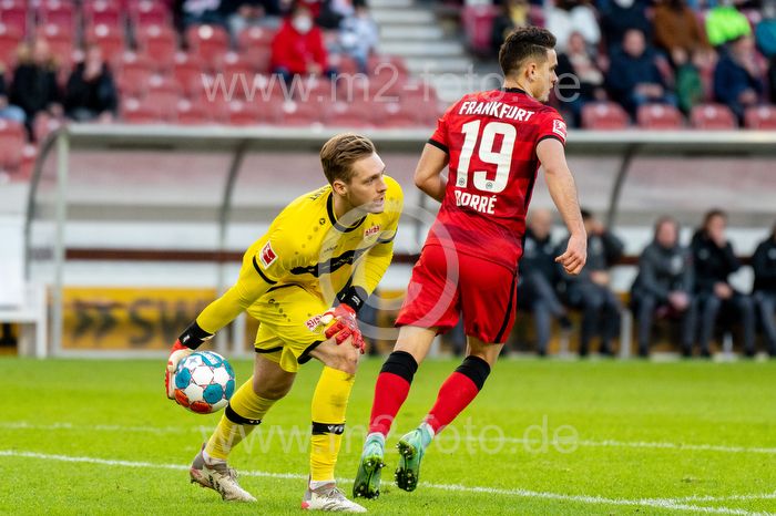Torwart Florian Müller (VfB Stuttgart) und Rafael Borre (Eintracht Frankfurt).