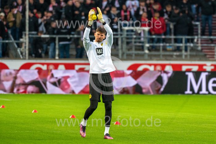 Torwart Gregor Kobel (Borussia Dortmund) begrüßt das Stuttgarter Publikum.