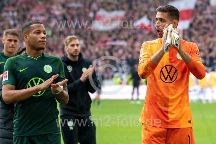 Aster Vranckx (VfL Wolfsburg) und Torwart Koen Casteels (VfL Wolfsburg).
