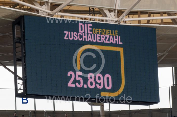 Feature, Symbolbild, die offizielle Zuschauerzahl 25.890 wird auf der Anzeigetafel angezeigt.