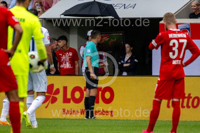 Schiedsrichter Robert Hartmann beim Video-Assist.