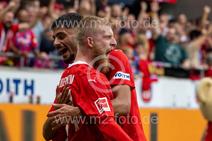 Torjubel des Torschützen Jan-Niklas Beste (1.FC Heidenheim).