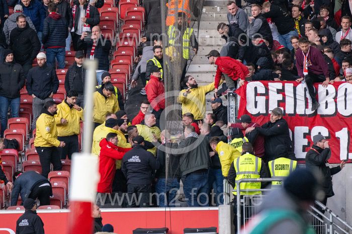 Tumulte nach dem Schlusspfiff im Kölner Fanblock.