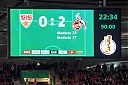 2021.10.27 Fussball, DFB-Pokal: VfB Stuttgart vs 1.FC Köln13 x angesehenFeature, Symbolbild, das Endergebnis und der Doppeltorschütze Anthony Modeste (1.FC Köln) wird auf der Anzeigentafel präsentiert.