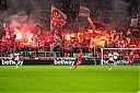 2021.10.24 Fussball, Bundesliga: VfB Stuttgart vs 1.FC union Berlin14 x angesehenBengalos, Pyrotechnik, Rauch steigt auf im VfB-Fanblock.